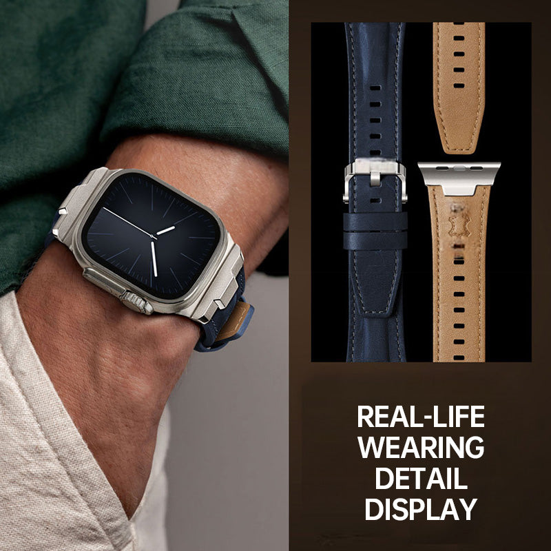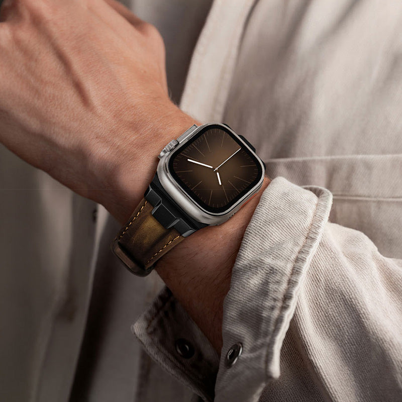 Compatible with multiple Apple Watch sizes and models, this band combines traditional leather craftsmanship with modern device precision—designed for men who value detail and reliability.