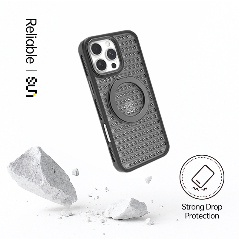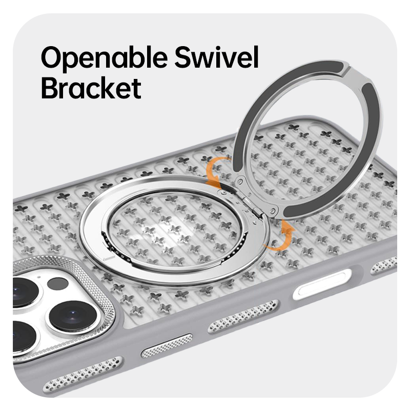A sleek fusion of clarity, comfort, and control, this case combines a slim transparent back with a built-in metal ring stand—ready for MagSafe, grip, and kickstand use anytime.